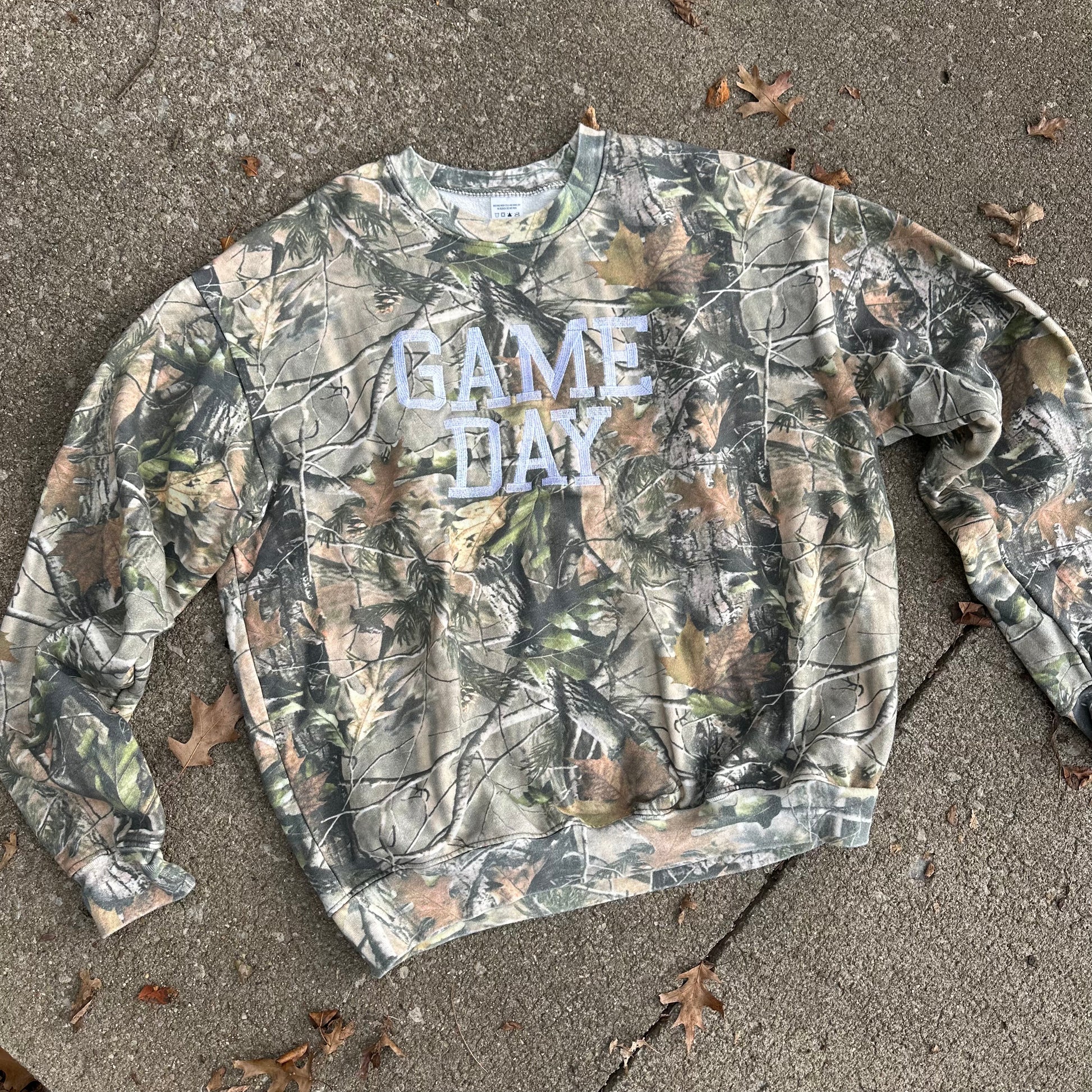 oversized drop shoulder, 100% cotton, heavyweight, vintage wash camo crewneck.