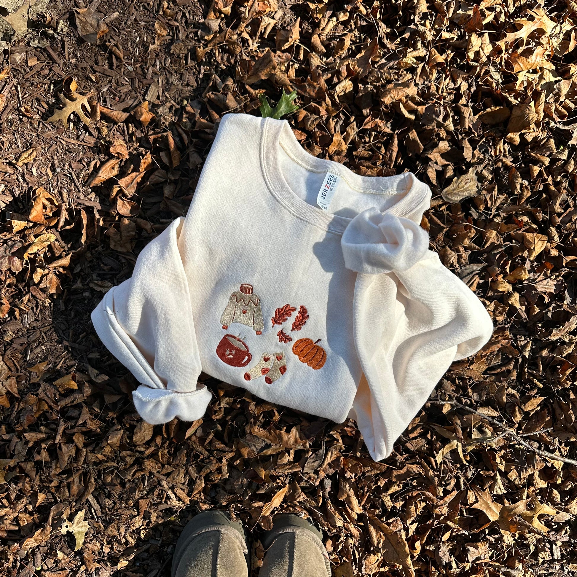 cotton/poly crewneck with embroidered design! option to choose your sweatshirt color! color shown is sweet cream. unisex adult sizing.