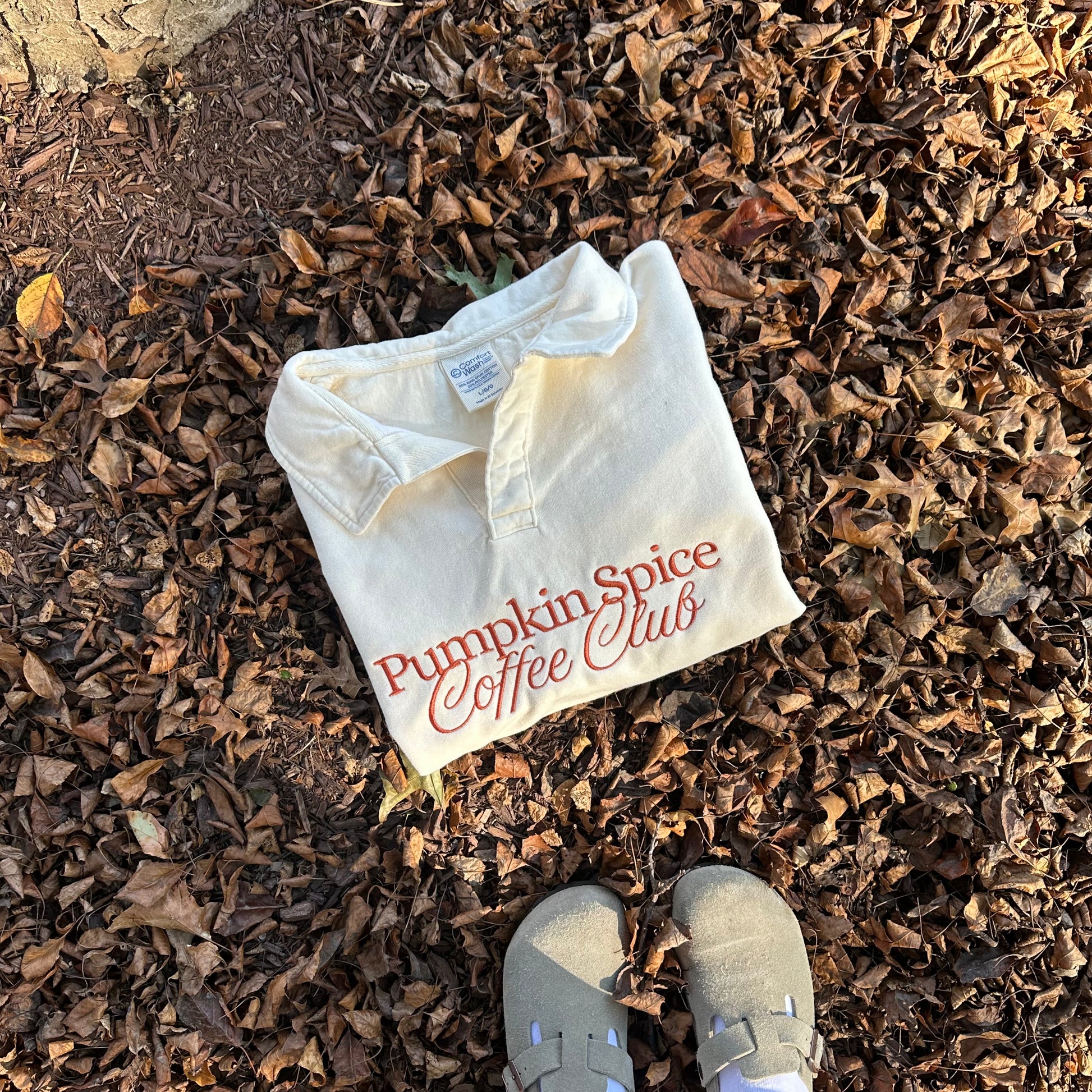 Pumpkin Spice Coffee Club Collared Polo Sweatshirt