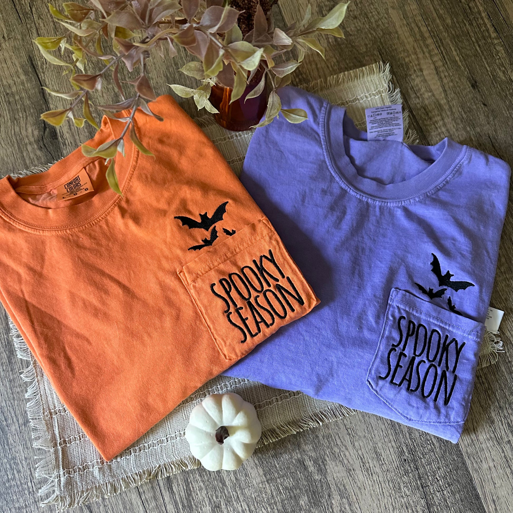 100% cotton, comfort colors tee. purple or orange color options. unisex adult sizing.